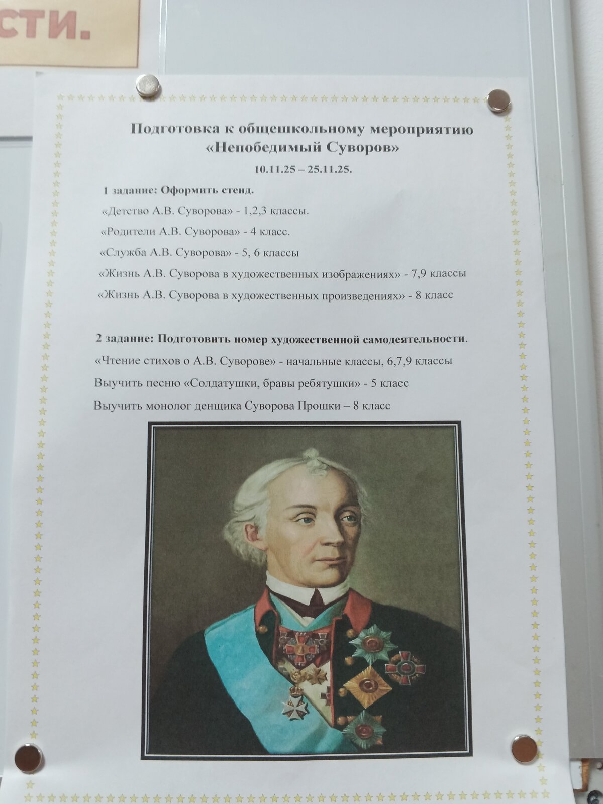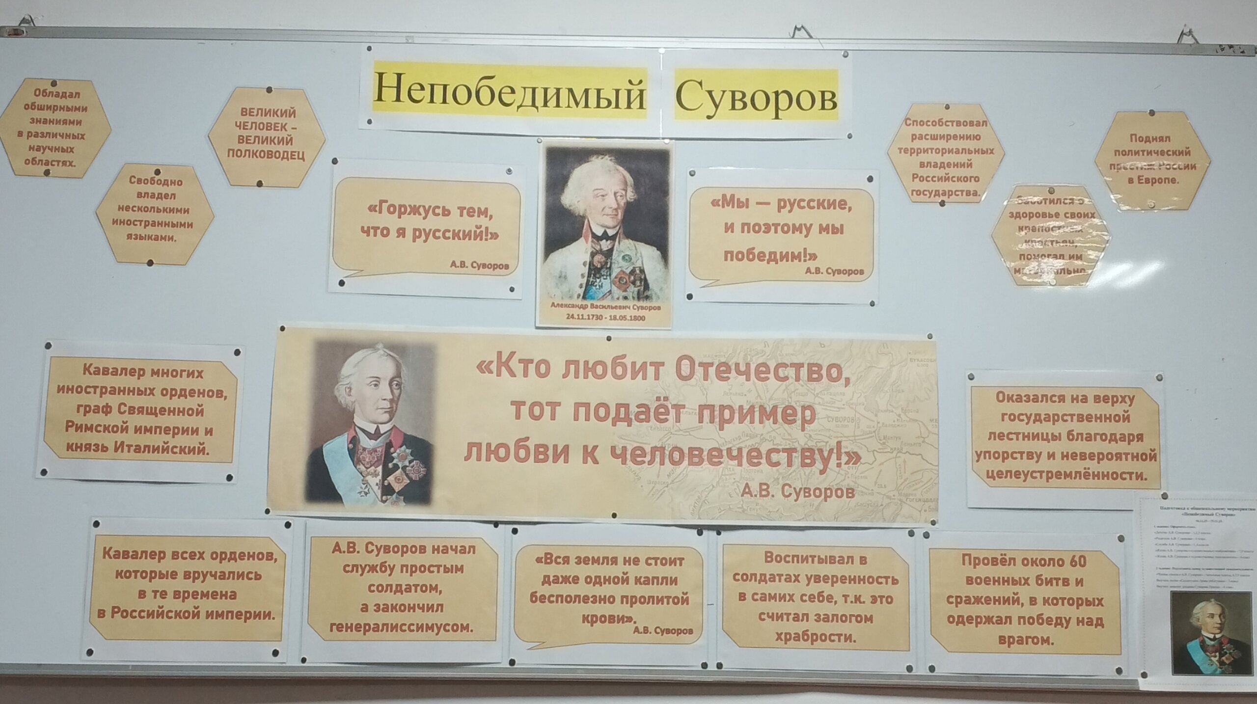 С 10ноября по 25 ноября в школе проходило мероприятие "Непобедимый Суворов".